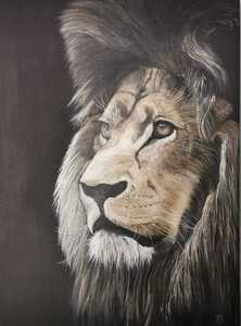 2020Leeuw met 3 kleuren geschilderd en rondom een baklijst